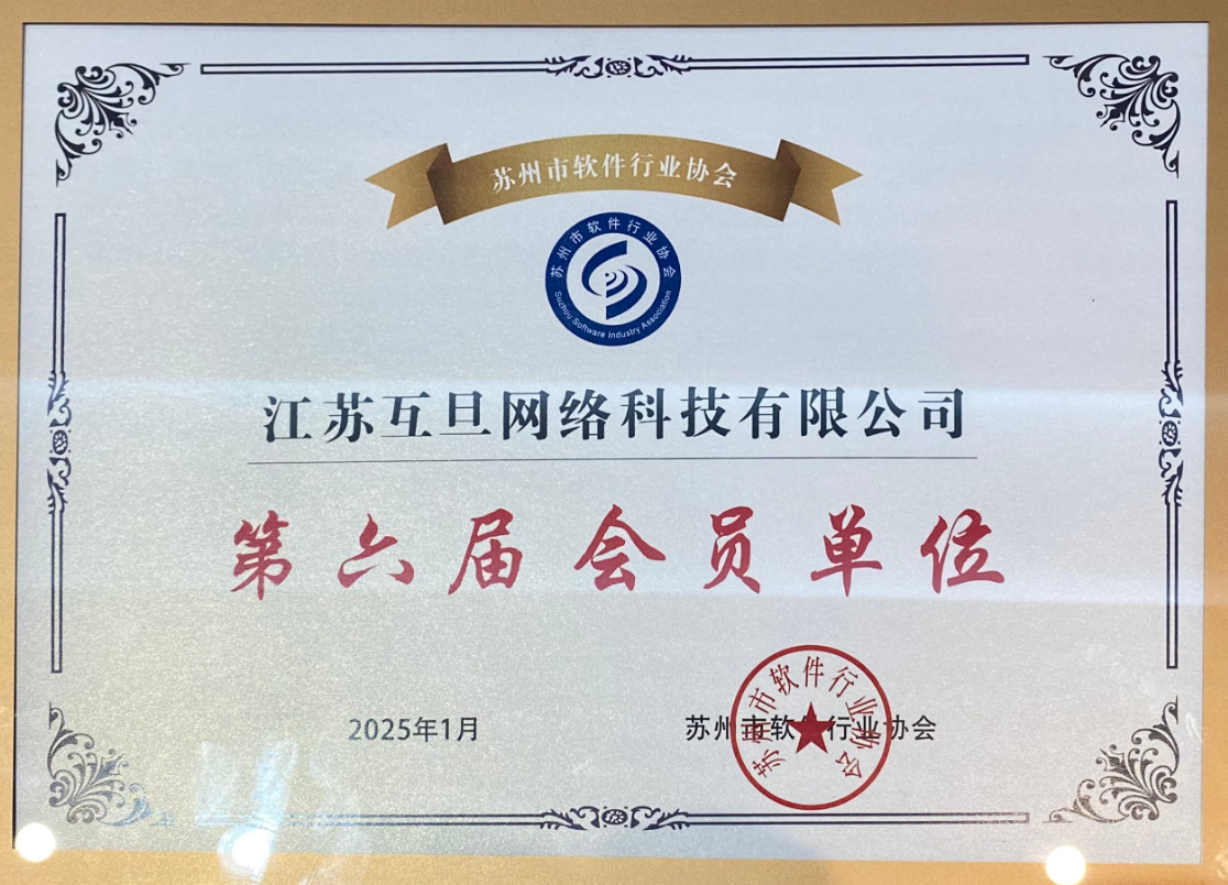 互旦科技作为新晋会员单位,正式加入苏州市软件行业协会,并凭借其软件产品荣获“苏州市优秀软件产品”授牌。