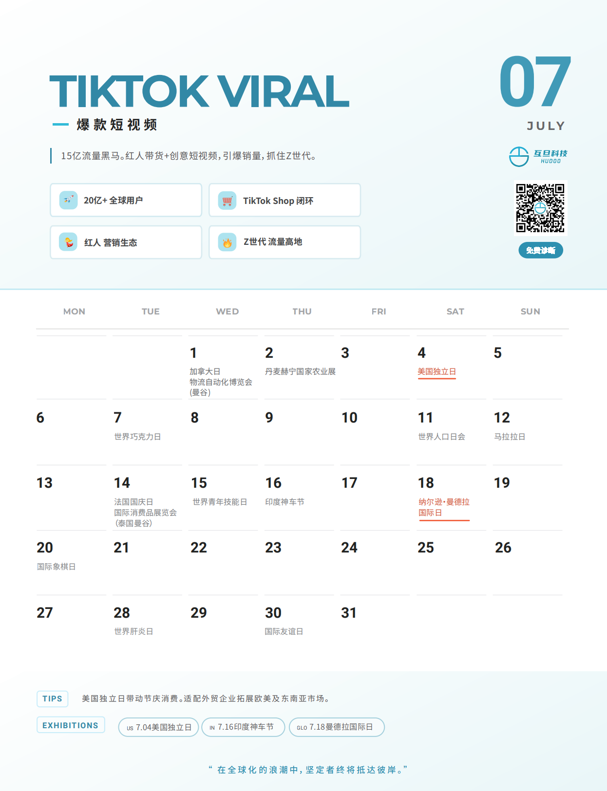 即将进入 2026 年,海外市场节奏持续加快,平台规则、投放窗口和采购周期都在不断变化。基于长期服务外贸与出海企业的实操经验,互旦科技正式发布 2026「出海营销日历」,帮助我们的外贸企业提前规划全年出海节奏,减少试错成本,把资源用在更有把握的关键节点上!