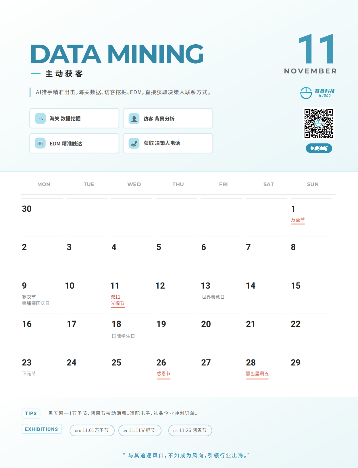 互旦科技2026年出海日历首发免费送!互旦科技现在正式推出《2026 年度外贸营销日历》,这是一款围绕全年营销节奏而设计的实用工具,而不仅是一份节日清单。