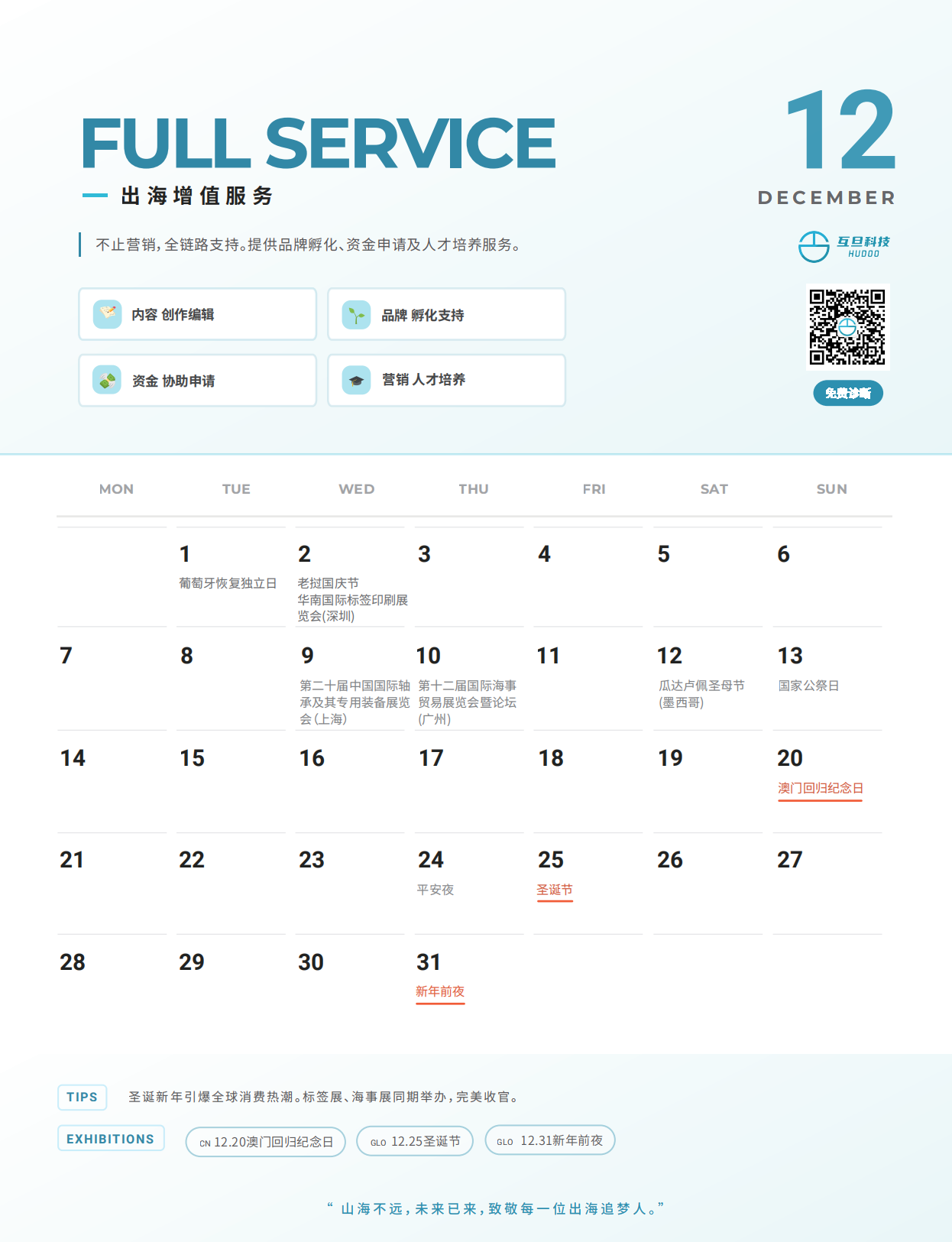 2025 年接近尾声,感谢大家这一年来对互旦科技的关注与支持。借着《2026 年度外贸营销日历》首发,我们也准备了一份小小心意,与大家一起迎接新一年的到来。