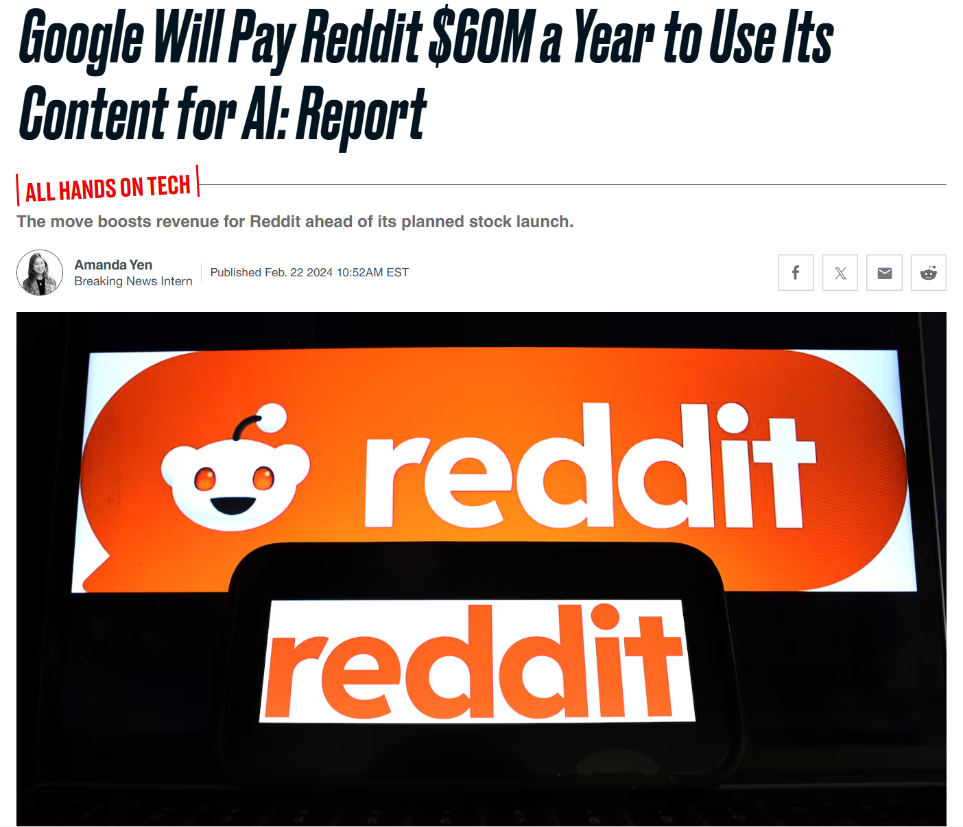 很多人以为 Reddit 只是个闲聊灌水的论坛,却没发现它已经成了 Google 搜索结果的“亲儿子”。相信已经有听说 Google 每年花 6000 万美金买Reddit数据的小伙伴了,这样一来本质上是买下了全球最真实的买家行为数据。