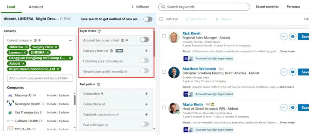 LinkedIn 会基于用户行为,标记潜在客户的购买意向,当潜在客户查看了你的个人资料、与你的内容互动,或关注了你的企业页面,LinkedIn 会将其标记为具有购买意向的潜在客户。