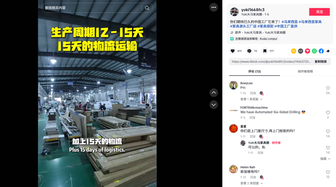 同时,他们在主页挂上独立站链接和定制化询盘表单,评论区及时回复客户问题。几个月下来,收到了150多条海外询盘,多个转化为长期合作订单。
